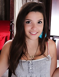 Adorable brown eyed cutie Alice Rae spreads her pussy.